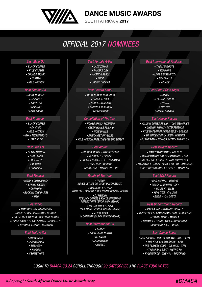 With the closing date for submissions closing this past Friday, the top final nominees in each category can finally be announced today. The nominee selection was held entirely online with the Dance Music Awards South Africa managed as an audience-voted award event dedicated to South African dance music.
