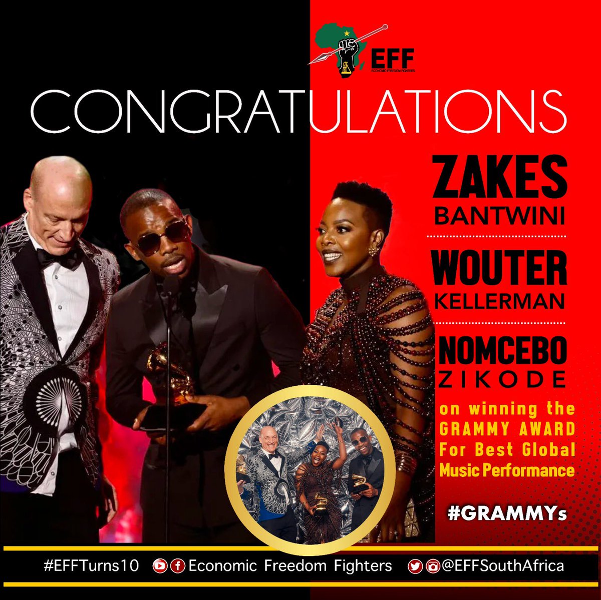 Moreover, Wouter Kellerman recieved his second Grammy award while Zakes Batwini and Nomcebo Zikode received their first.