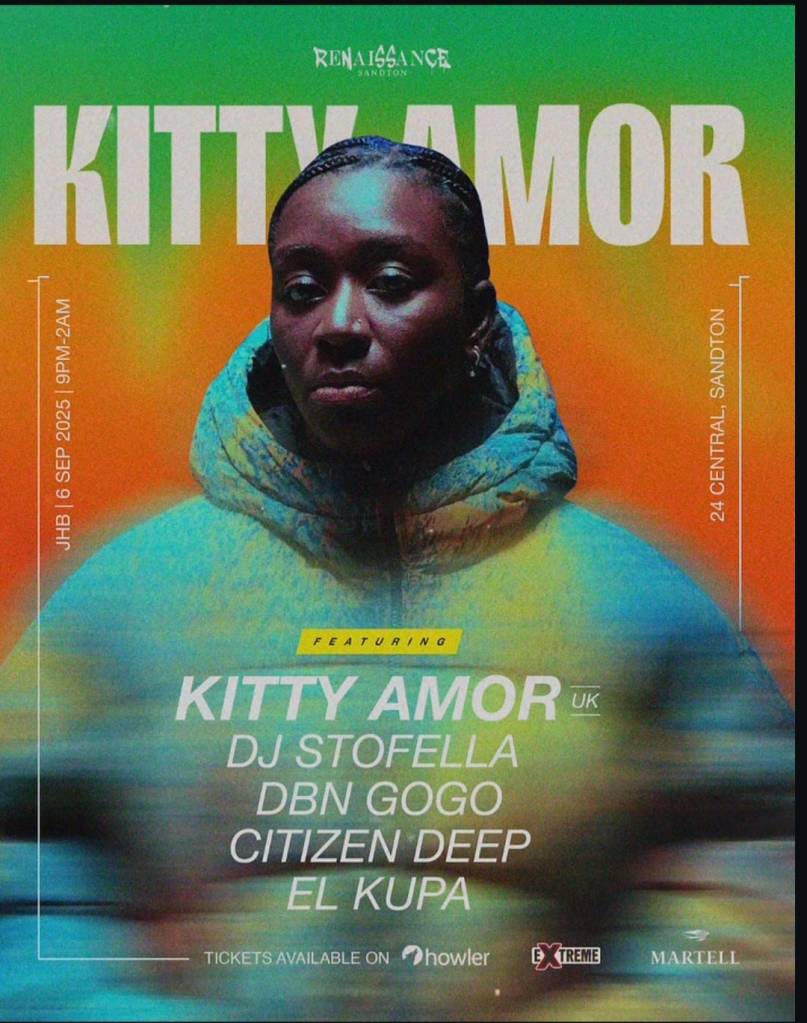 Known for her boundary-pushing sets and magnetic stage presence, UK-based Kitty Amor will bring her signature Afro-infused sound to Johannesburg for a one-night-only performance. Joining her on the lineup are some of the most dynamic names in South African electronic music:
